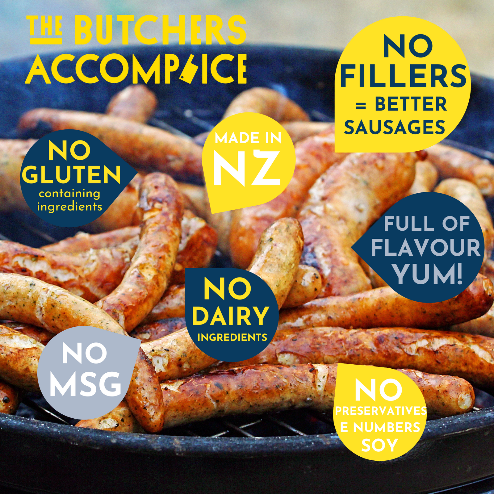 The Butchers Accomplice is a collaboration between award winning sausage maker, master butcher and passionate foodie, Paul Greaney from The Chop Shop and The New Zealand Casings Co. Paul's snags are so good that in 2013 he took out the supreme award at the New Zealand Sausage Competition for his Village Pork Sausage.